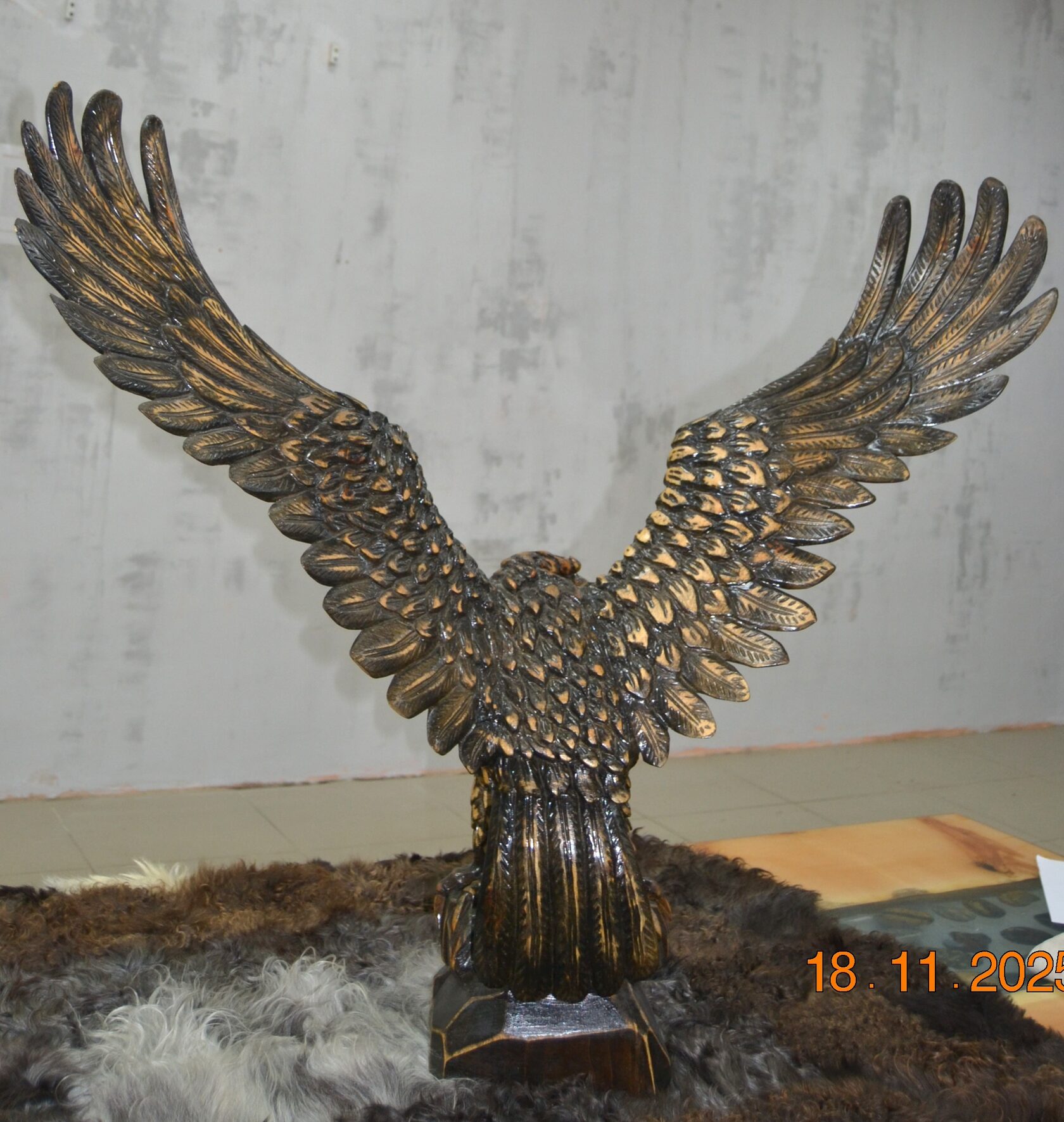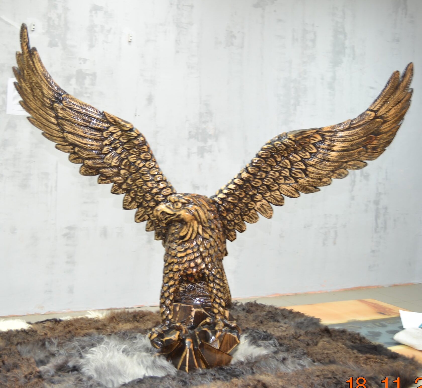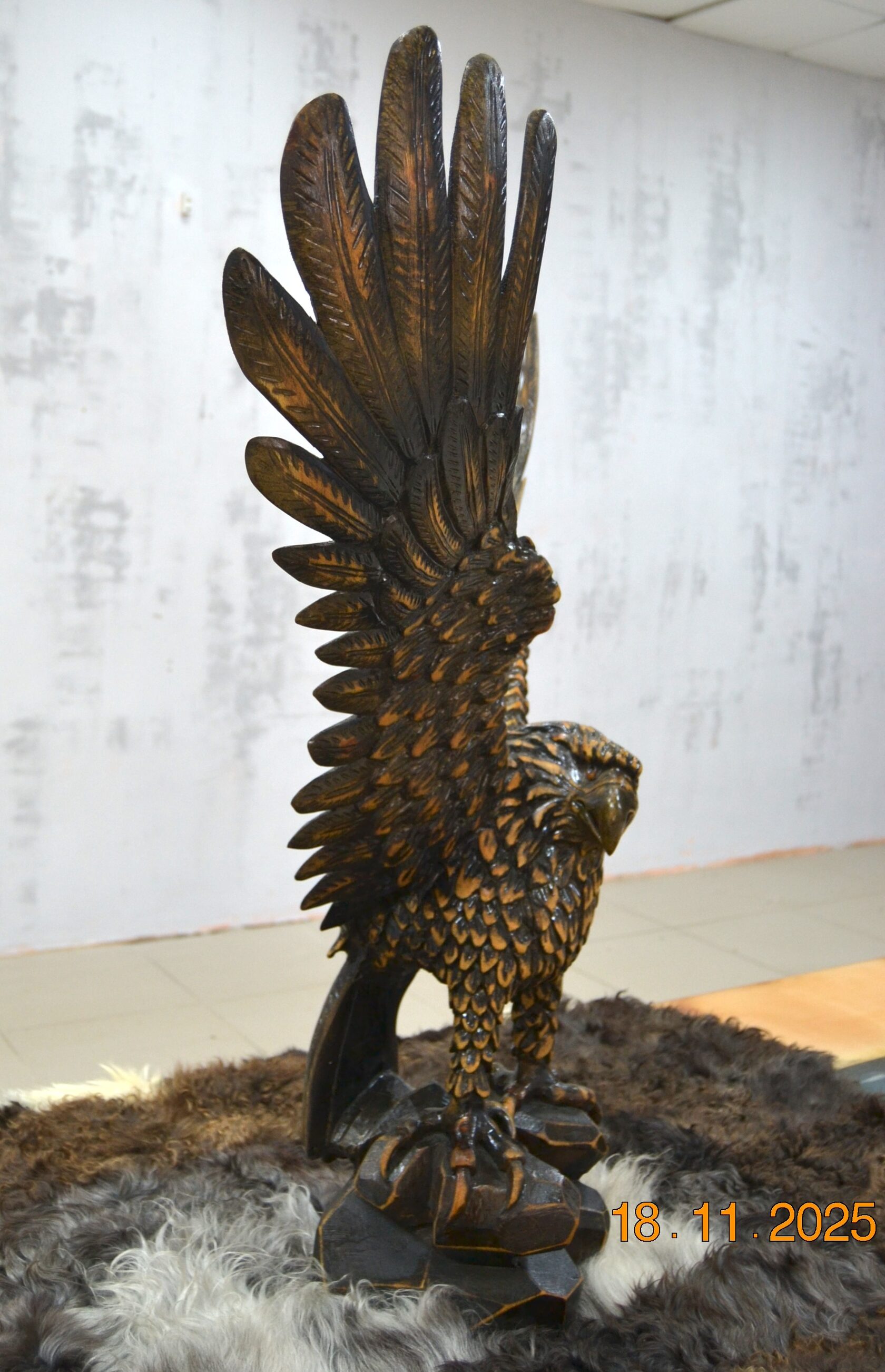 Статуя величественной птицы, выполненная из кедра. Ручная работа.