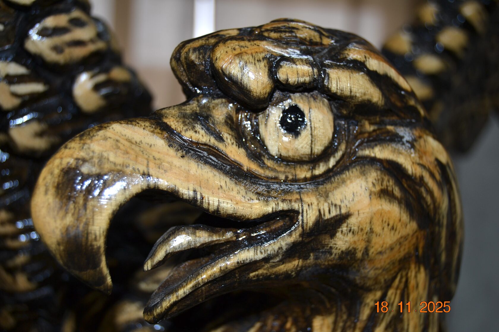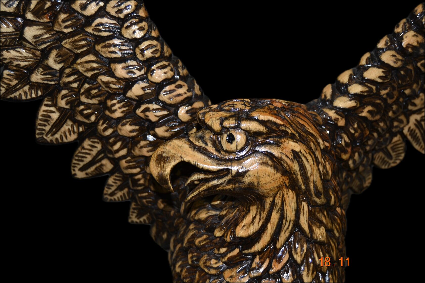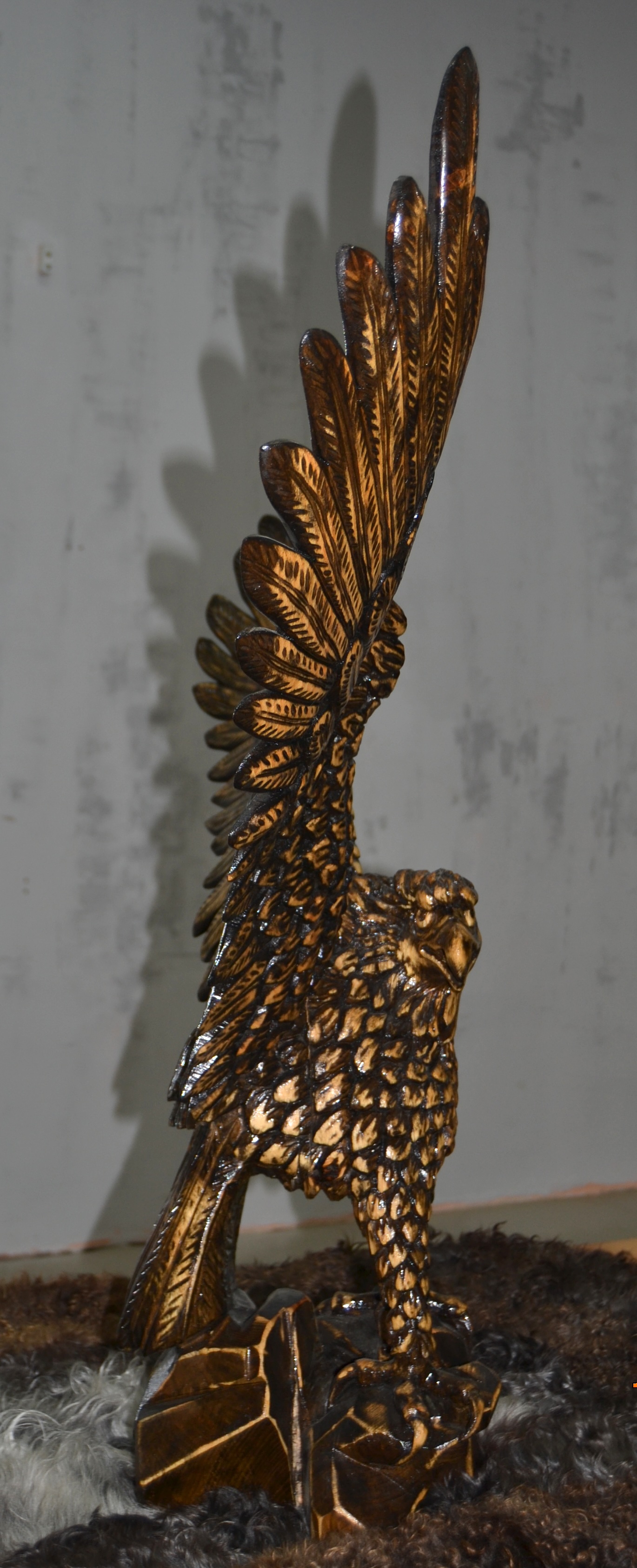 Статуя величественной птицы, выполненная из кедра. Ручная работа.